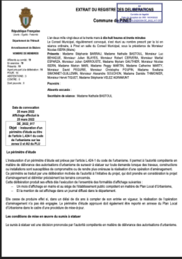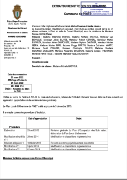 Plan Local d’Urbanisme 2ème Modification du plan Local d’urbanisme Pièce n°3 : Règlement : 3A Règlement des zones 2ème Modification du plan local d’urbanisme Pièce n°3 : Règlement : 3B Liste des emplacements réservés 2ème Modification du plan local d’urbanisme Pièce n°3c Plan de zonage de la commune 2ème Modification du plan local d’urbanisme Pièce n°3c Plan de zonage du village Plan Local d’Urbanisme : Révision du 30 Mars 2022 Adoption du bilan du PLU. Annexe adoption du bilan du PLU. Prescription révision générale du PLU. Justifications de l’ouverture à l’urbanisation Annexe instauration périmètre d’étude Instauration périmètre d’étude article 424-1